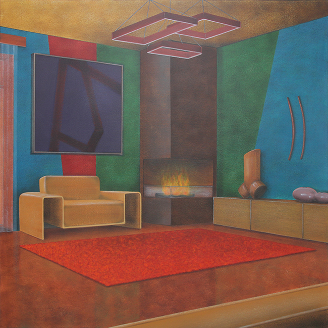 Untitled (Weapons, Torso and Yellow Chair) Acrylic on canvas | 1220 x 1220 mm