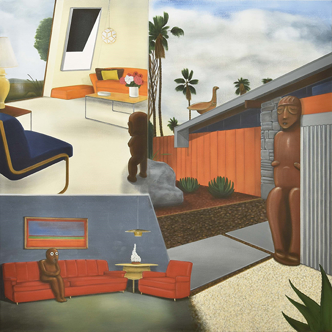 Untitled (Totems and Bird) Acrylic on canvas | 1520 x 1520 mm