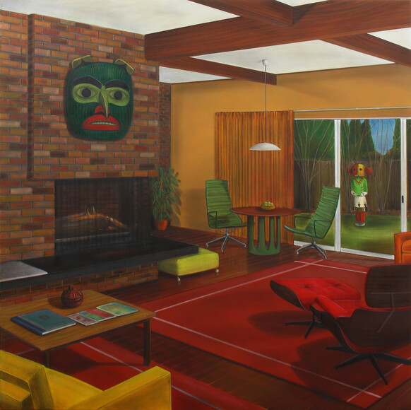 Spirit Rooms II (Mask, Figure and Jug) oil on canvas | 1500 x 1500 mm
