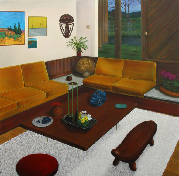 Spirit Rooms II (Head, Rack and Stool) oil on canvas | 1500 x 1500 mm